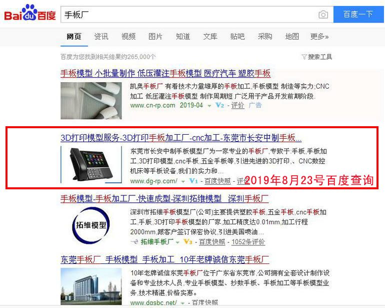 手板加工 百度(PC)自然排名第1名